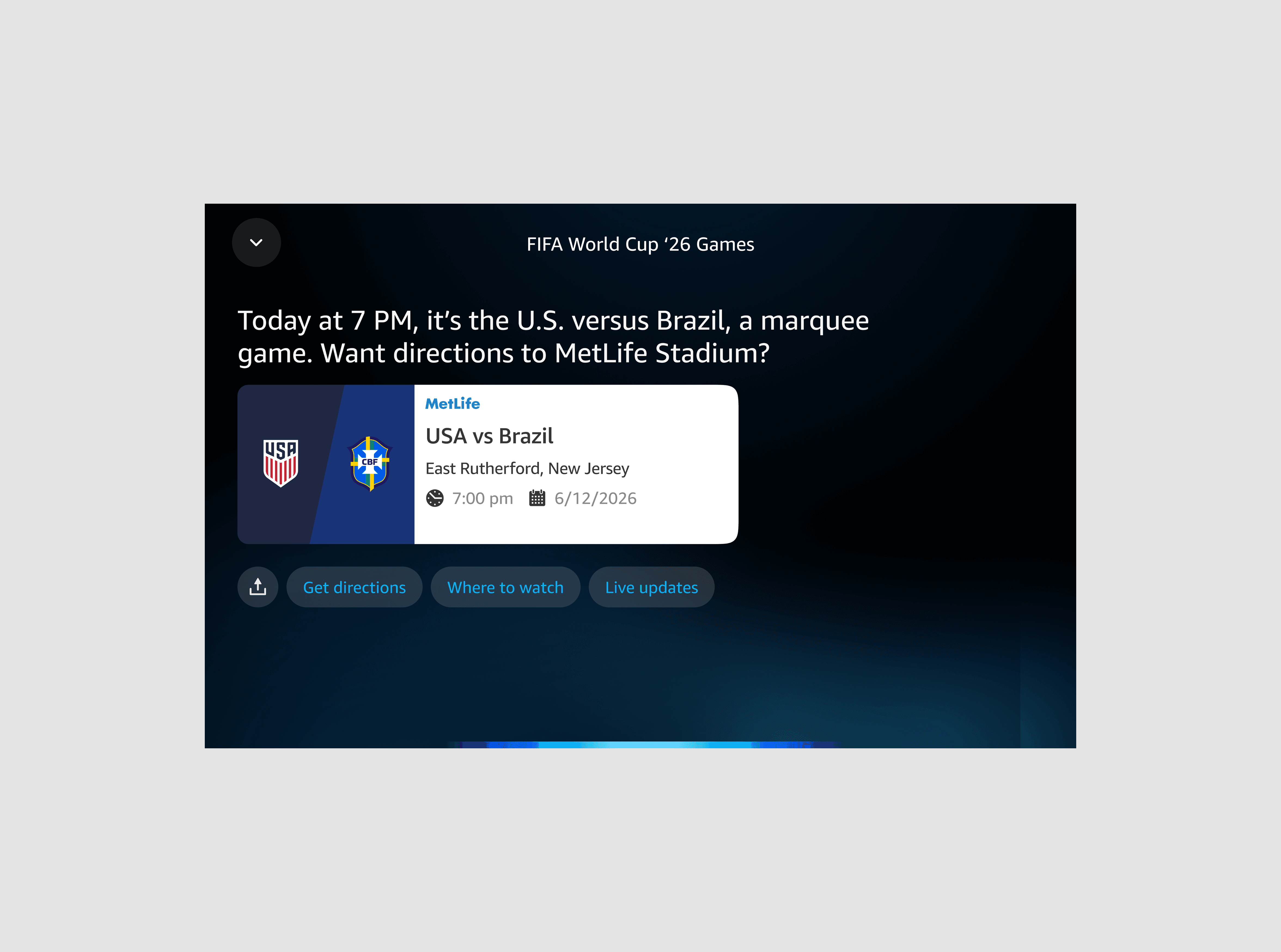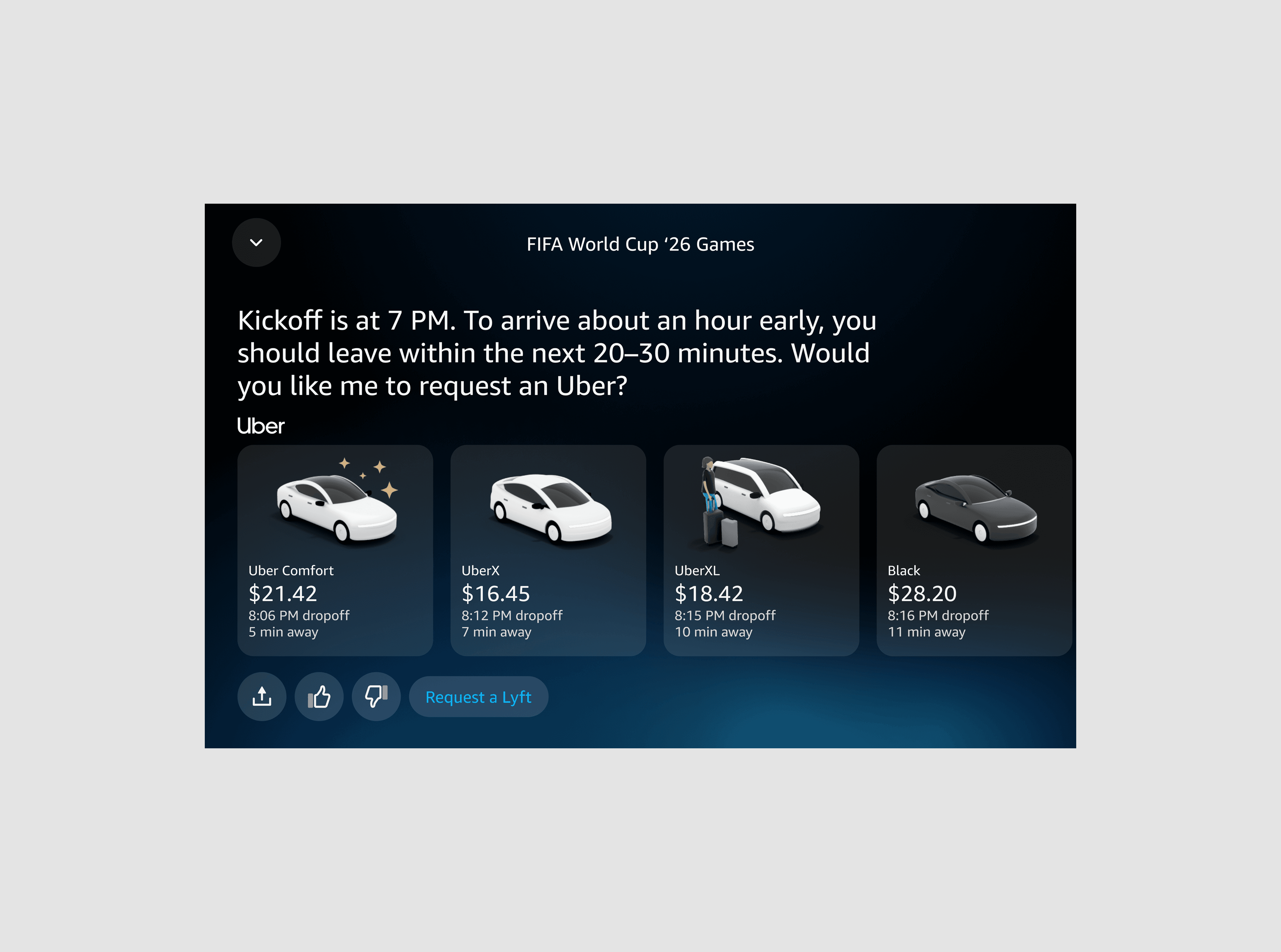 I have used this narrative approach to show how Alexa+ could support travelers during major global events or serve as a cultural guide that connects visitors to local food, tours, and experiences in a new city. These vignettes do not just present features. They help partners see how Alexa+ can make their brand feel more human, more welcoming, and more memorable.