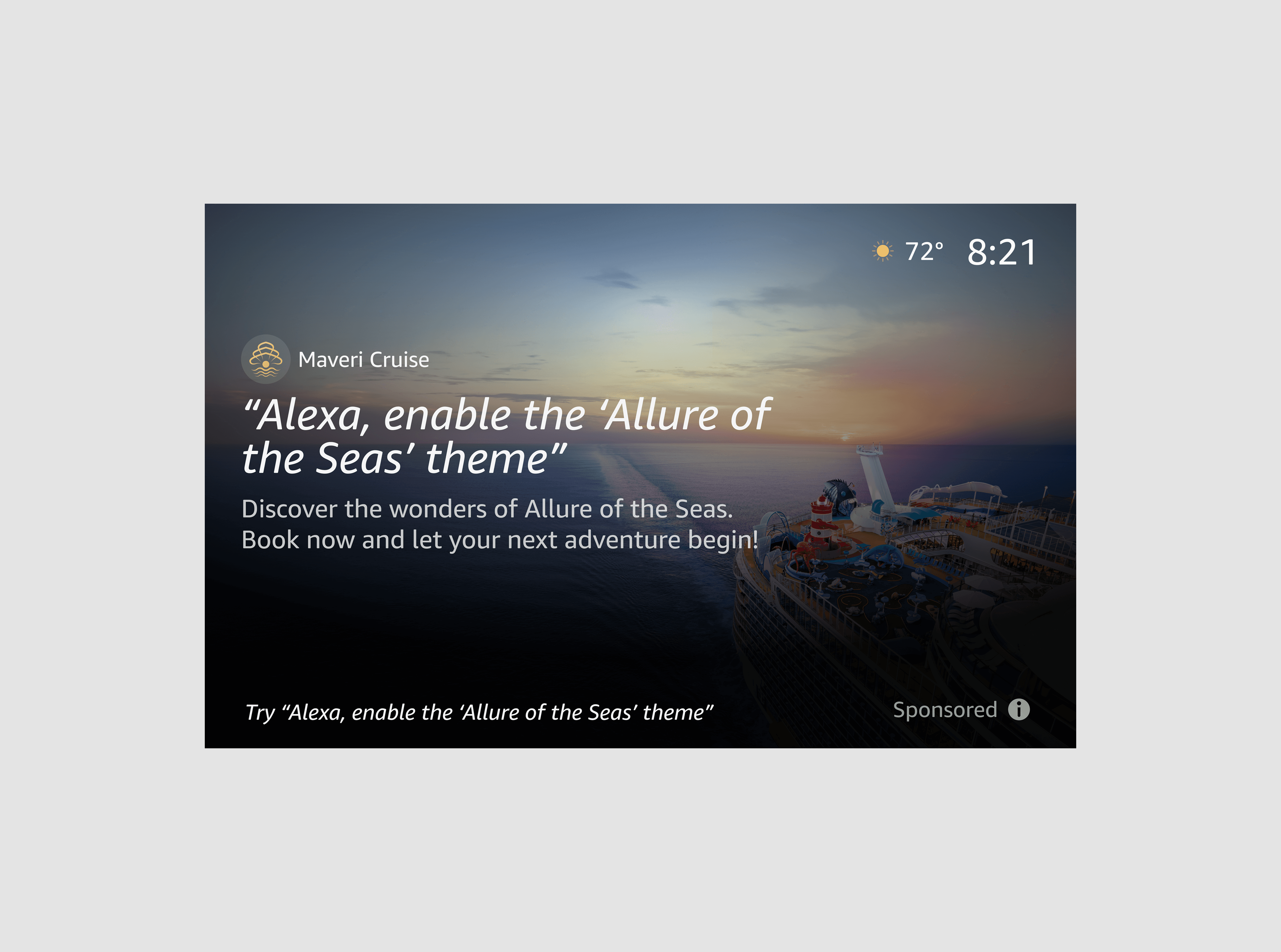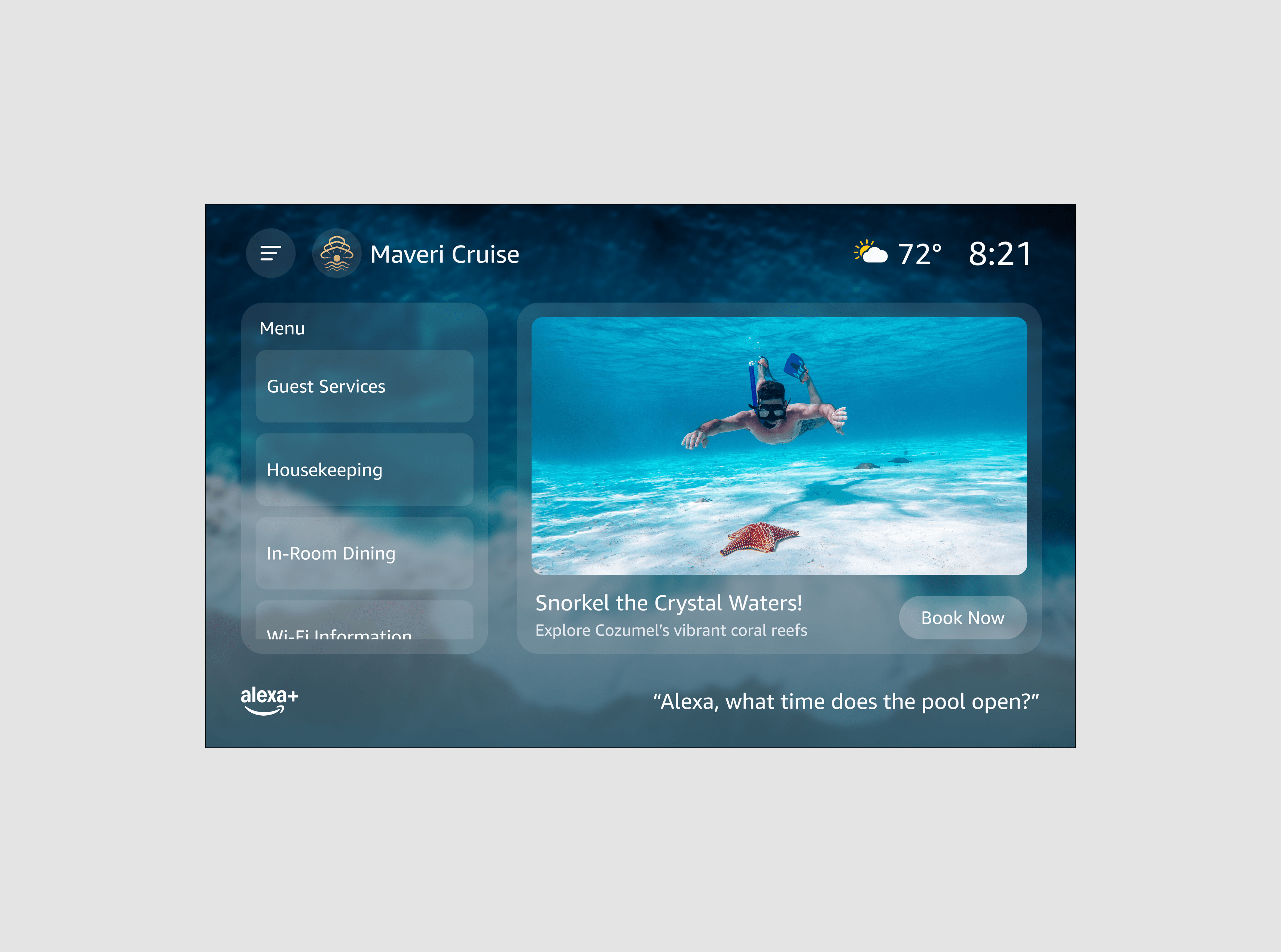 For Alexa+ Enterprise, I help partners imagine what their brand would feel like as a living voice experience. I write the stories that bring these concepts to life. When our business development team begins a conversation with a hotel group, travel platform, or tourism board, I craft narrative vignettes that show how guests would discover, explore, and be cared for through Alexa+, using both voice and touch. This includes scripted voice interactions, prototypes, AI persona creation, and collaborating with video production agencies to creatively direct marketing videos for verticals like hospitality and telecommunications.