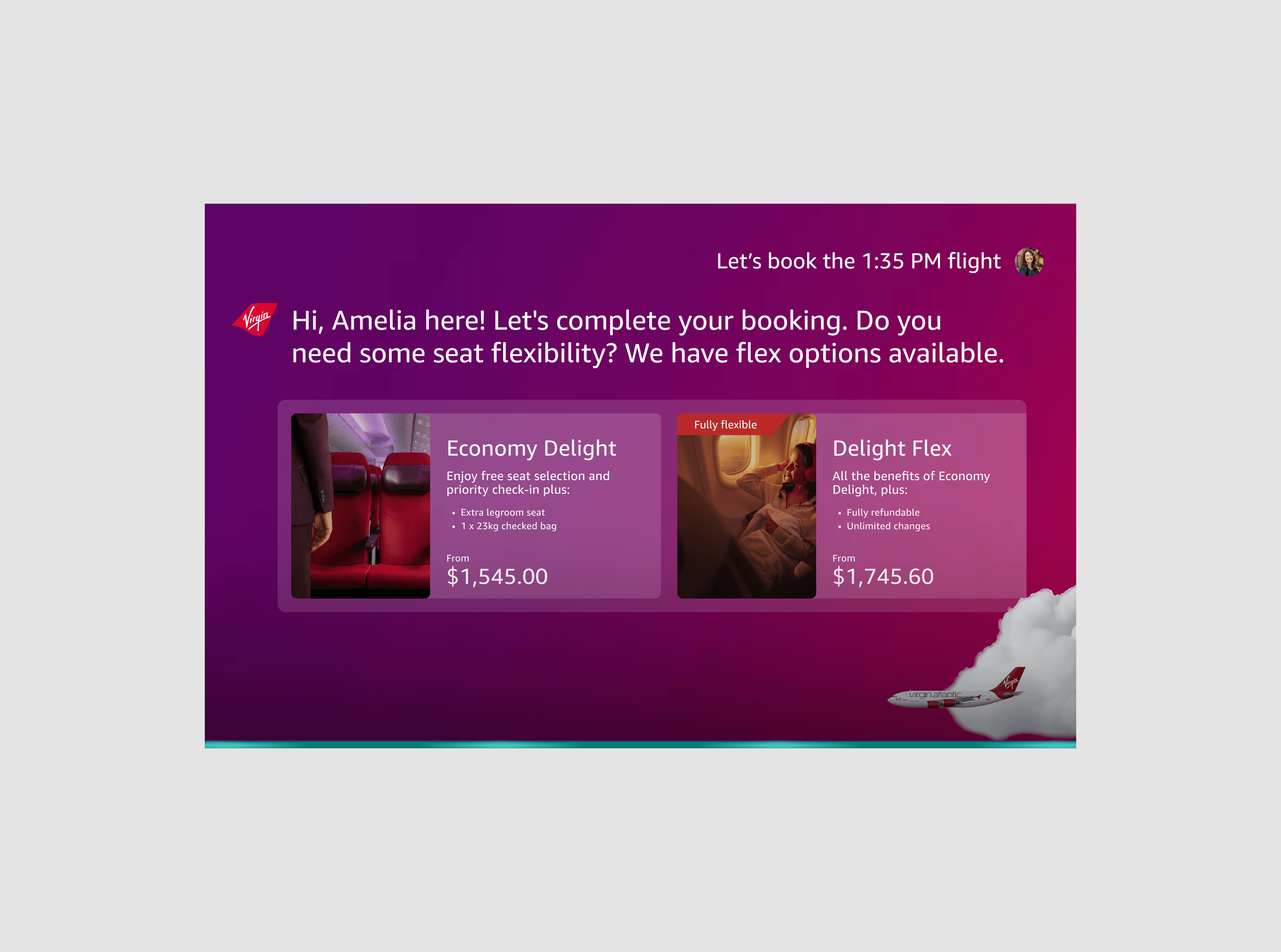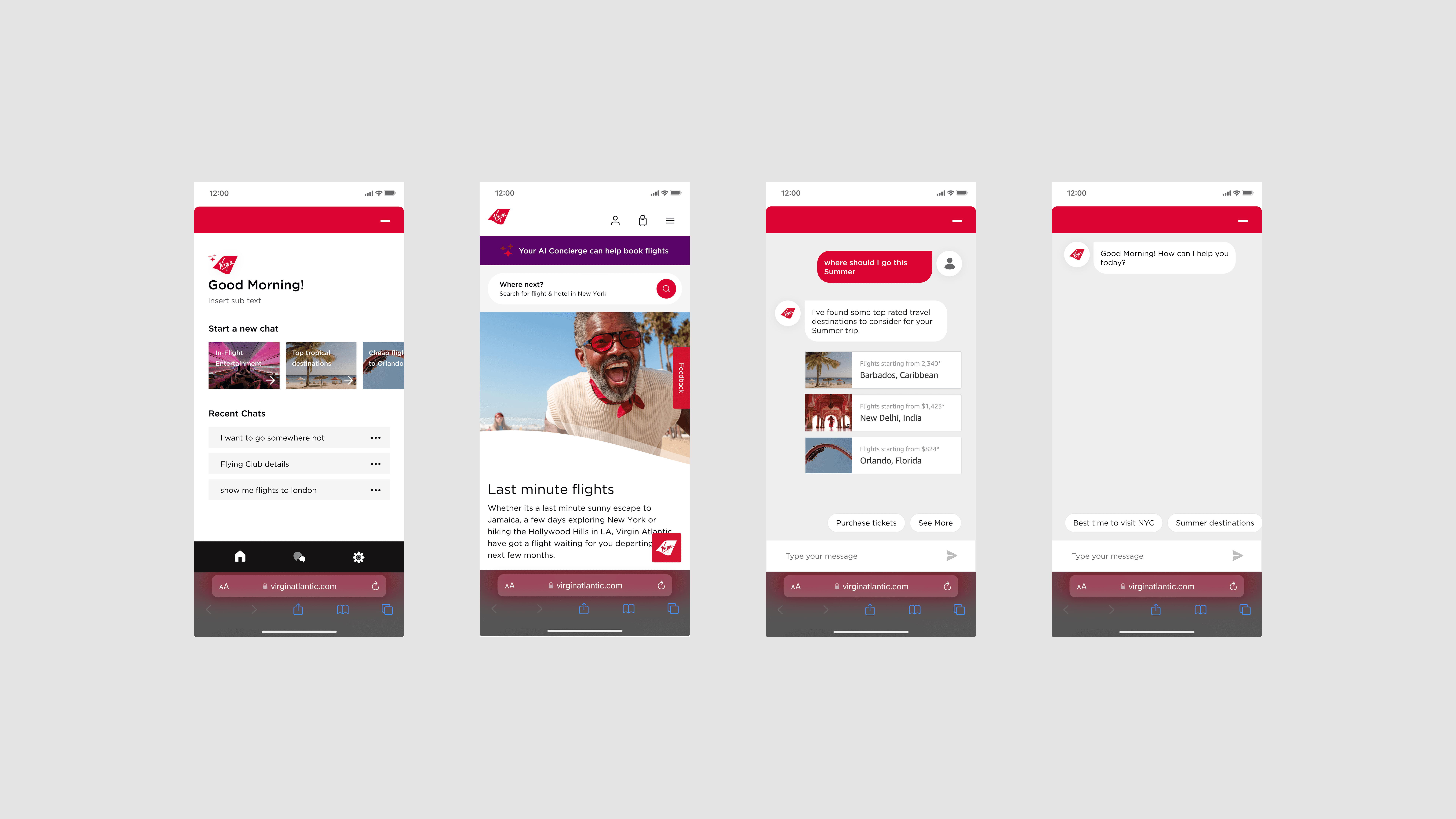My focus was to make her feel like a thoughtful guide who could inspire new trips, ease stressful moments, and carry the spirit of Virgin through every conversation.